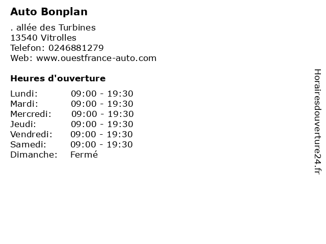 | Lundi | 09:00-19:30 |