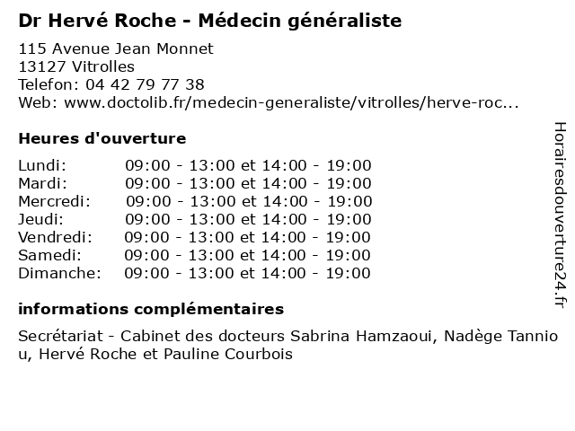 | Jeudi | 09:00-13:00 et 14:00-19:00 |
