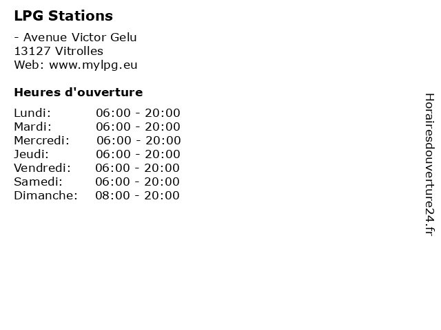 | Lundi | 06:00-20:00 |