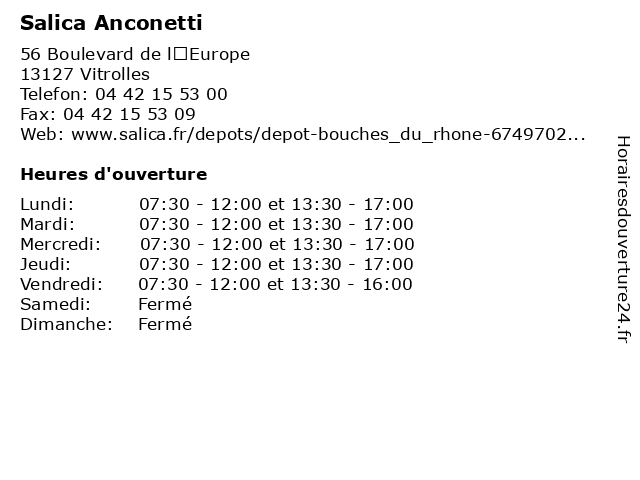 | Lundi | 07:30-12:00 et 13:30-17:00 |