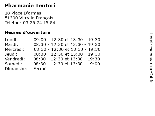 | Samedi | 08:30-12:30 et 13:30-19:00 |