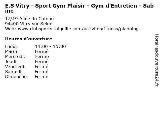 1 E.S Vitry - Sport Gym Plaisir - Gym d'Entretien - Elise (Distance: 0,00 km) 17/19 Allée du Coteau, 94400 Vitry sur Seine centre, cours, d'entretien, e.s, elise, gym, l'exercice, muscles, plaisir, salles, santé, sport, vitry 2 E.S Vitry - Sport Gym Plaisir - Gym d'Entretien - Françoise (Distance: 0,00 km) 17/19 Allée du Coteau, 94400 Vitry sur Seine centre, cours, d'entretien, e.s, françoise, gym, l'exercice, muscles, plaisir, salles, santé, sport, vitry 3 E.S Vitry - Sport Gym Plaisir - Gym d'Entretien - Ginette (Distance: 0,00 km) 17/19 Allée du Coteau, 94400 Vitry sur Seine centre, cours, d'entretien, e.s, ginette, gym, l'exercice, muscles, plaisir, salles, santé, sport, vitry 4 E.S Vitry - Sport Gym Plaisir - Gym d'Entretien - Abdellatif (Distance: 0,00 km) 17/19 Allée du Coteau, 94400 Vitry sur Seine abdellatif, centre, cours, d'entretien, e.s, gym, l'exercice, muscles, plaisir, salles, santé, sport, vitry 5 E.S Vitry - Sport Gym Plaisir - Gym d'Entretien - Francine (Distance: 0,00 km) 17/19 Allée du Coteau, 94400 Vitry sur Seine centre, cours, d'entretien, e.s, francine, gym, l'exercice, muscles, plaisir, salles, santé, sport, vitry 6 E.S Vitry - Sport Gym Plaisir - Gym d'Entretien - Anne-Lise (Distance: 0,00 km) 17/19 Allée du Coteau, 94400 Vitry sur Seine anne, centre, cours, d'entretien, e.s, gym, l'exercice, lise, muscles, plaisir, salles, santé, sport, vitry |