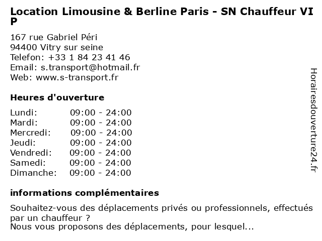| Samedi | 09:00-24:00 |