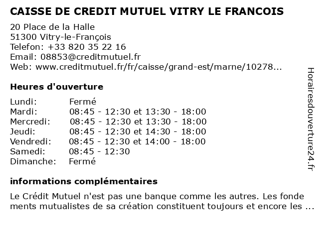Termes de recherche pour CAISSE DE CREDIT MUTUEL VITRY LE FRANCOIS:le, de, vitry, francois, crédit, mutuel, caisse |