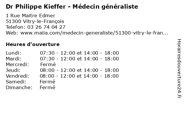 | Lundi | 07:30-12:00 et 14:00-18:00 |