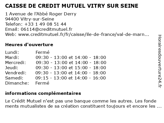 Termes de recherche pour CAISSE DE CREDIT MUTUEL VITRY SUR SEINE:sur, seine, de, vitry, crédit, mutuel, caisse |