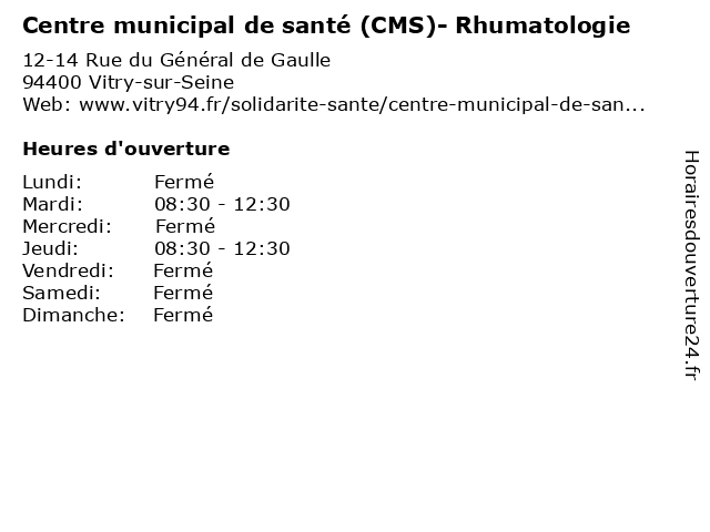 1 Centre municipal de santé (CMS) (Distance: 0,00 km) 12-14 Rue du Général de Gaulle, 94400 Vitry-sur-Seine centre, cms, de, medecins, municipal, sante, santé, services 2 Centre municipal de santé (CMS)- Angéiologie-phlébologie (Distance: 0,00 km) 12-14 Rue du Général de Gaulle, 94400 Vitry-sur-Seine angéiologie, centre, cms, de, medecins, municipal, phlébologie, sante, santé, services 3 Centre municipal de santé (CMS)- Cardiologie - Holter ECG - Échographie (Distance: 0,00 km) 12-14 Rue du Général de Gaulle, 94400 Vitry-sur-Seine cardiologie, centre, cms, de, ecg, holter, medecins, municipal, sante, santé, services, échographie 4 Centre municipal de santé (CMS)- Dermatologie (Distance: 0,00 km) 12-14 Rue du Général de Gaulle, 94400 Vitry-sur-Seine centre, cms, de, dermatologie, medecins, municipal, sante, santé, services 5 Centre municipal de santé (CMS)-Gastro-entérologie (Distance: 0,00 km) 12-14 Rue du Général de Gaulle, 94400 Vitry-sur-Seine centre, cms, de, entérologie, gastro, medecins, municipal, sante, santé, services 6 Centre municipal de santé (CMS)-Gynécologie (Distance: 0,00 km) 12-14 Rue du Général de Gaulle, 94400 Vitry-sur-Seine centre, cms, de, gynécologie, medecins, municipal, sante, santé, services |