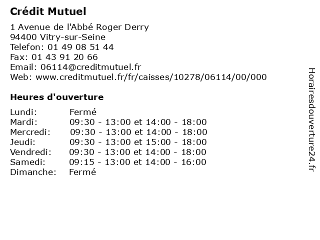 1 Crédit Mutuel (Distance: 0,03 km) 1 Avenue De L Abbe Roger Derry, 94400 Vitry Sur Seine compagnie de téléphone, crédit, mutuel, organisme d'assurance 2 Crédit Mutuel (Distance: 2,03 km) 8 Boulevard Paul Vaillant Couturier, 94800 Villejuif agence, assurance, bancaire, banque, crédit, mutuel 3 Crédit Mutuel (Distance: 2,04 km) 8 Boulevard Paul Vaillant Couturier, 94800 Villejuif compagnie de téléphone, crédit, mutuel, organisme d'assurance 4 Crédit Mutuel (Distance: 2,57 km) 140 Avenue Danielle Casanova, 94200 Ivry-sur-Seine agence, assurance, bancaire, banque, crédit, mutuel 5 Crédit Mutuel (Distance: 3,10 km) 93 Avenue de Fontainebleau, 94270 Le Kremlin-Bicêtre agence, assurance, bancaire, banque, crédit, mutuel 6 Crédit Mutuel (Distance: 3,73 km) 1 Rue de la République, 94220 Charenton Le Pont agence, assurance, bancaire, banque, crédit, mutuel |
