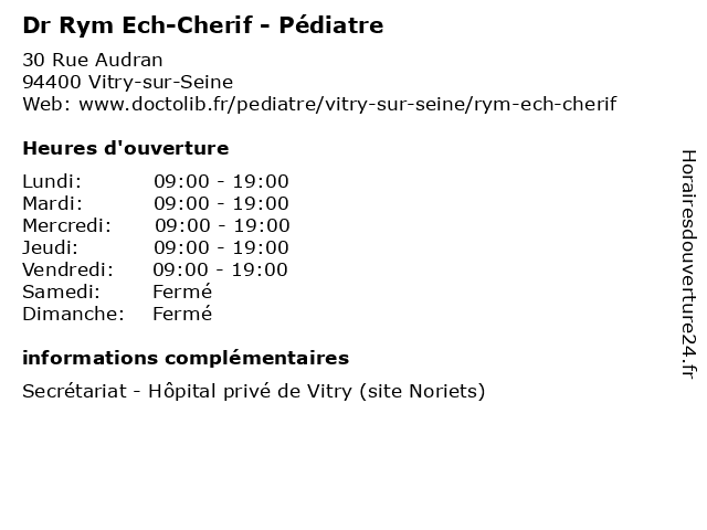 1 Dr Martine Truong - Pédiatre (Distance: 0,00 km) 30 Rue Audran, 94400 Vitry-sur-Seine des, dr, martine, nourrissons, pédiatre, pédiatrie, santé, truong 2 Dr Mohamad Nouoir Mahayni - Pédiatre (Distance: 0,00 km) 30 Rue Audran, 94400 Vitry-sur-Seine des, dr, mahayni, mohamad, nouoir, nourrissons, pédiatre, pédiatrie, santé 3 Dr Ourida Aoudia - Pédiatre (Distance: 0,00 km) 30 Rue Audran, 94400 Vitry-sur-Seine aoudia, des, dr, nourrissons, ourida, pédiatre, pédiatrie, santé 4 Dr Isma Kettal - Pédiatre (Distance: 0,00 km) 30 Rue Audran, 94400 Vitry-sur-Seine bebe, dr, isma, kettal, nourisson, pédiatre, pédiatrie 5 Dr Sophie Ravilly - Pédiatre (Distance: 1,31 km) 9 Allée Camélinat, 94800 Villejuif bebe, dr, nourisson, pédiatre, pédiatrie, ravilly, sophie 6 Dr. Rym Kharrat - Radiologue (Distance: 5,28 km) 51 Avenue du Maréchal de Lattre de Tassigny, 94000 Créteil consultation, docteur, dr., kharrat, med, medecine, medical, médecin, radiologue, rym, traitement |