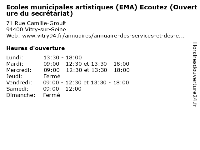 Termes de recherche pour Ecoles municipales artistiques (EMA) Ecoutez (Ouverture du secrétariat):du, services, publics, secretariat, ouverture, ecoles, ema, artistiques, municipales, ecoutez |