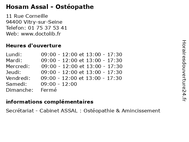| Jeudi | 09:00-12:00 et 13:00-17:30 |