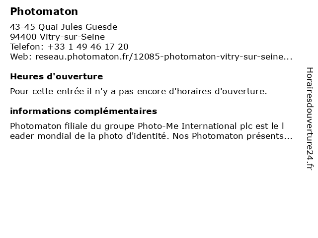 2 Photomaton (Distance: 1,13 km) Cours de la Gare, 94400 Vitry-sur-Seine photomaton