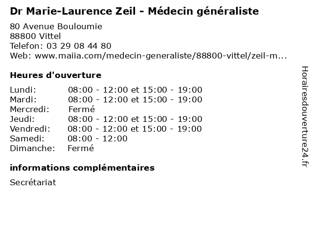 | Mardi | 08:00-12:00 et 15:00-19:00 |