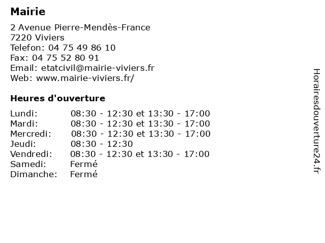 | Lundi | 08:30-12:30 et 13:30-17:00 |