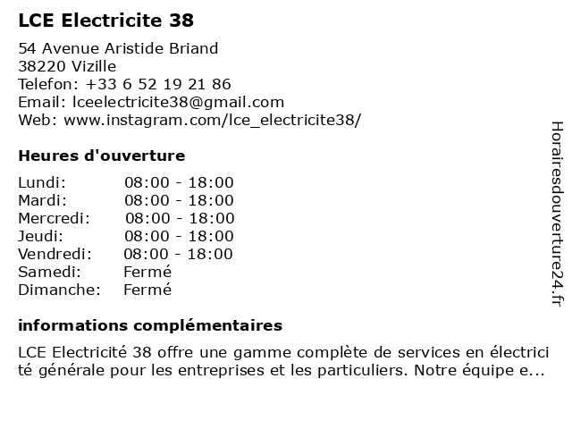 Termes de recherche pour LCE Electricite 38:38, electricité, lce |