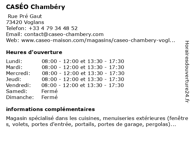 | Lundi | 08:00-12:00 et 13:30-17:30 |
