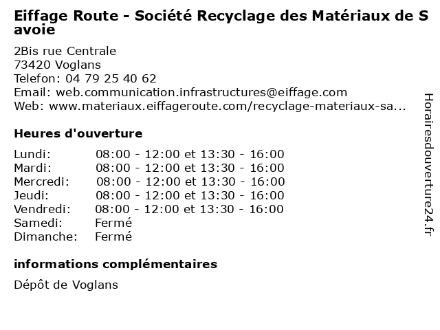 | Mercredi | 08:00-12:00 et 13:30-16:00 |