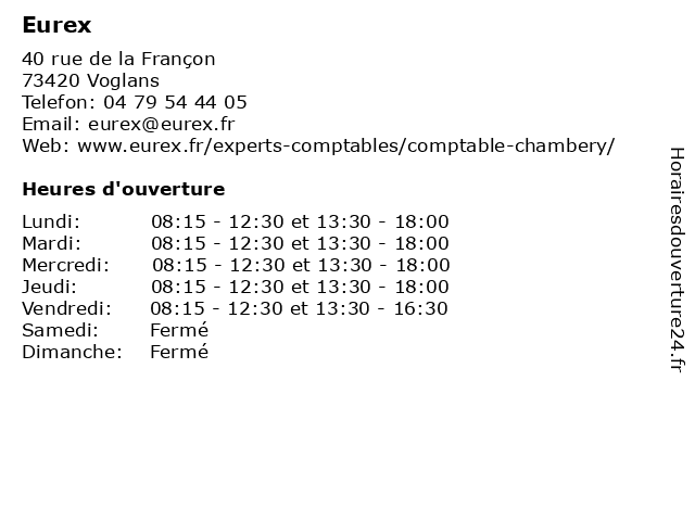 | Lundi | 08:15-12:30 et 13:30-18:00 |