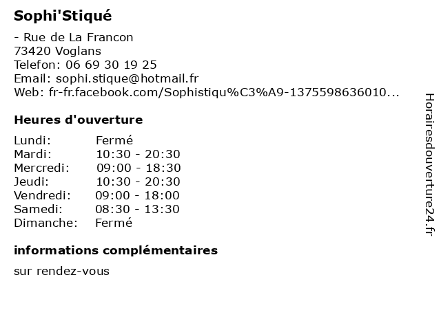 Horaires d'ouverture |