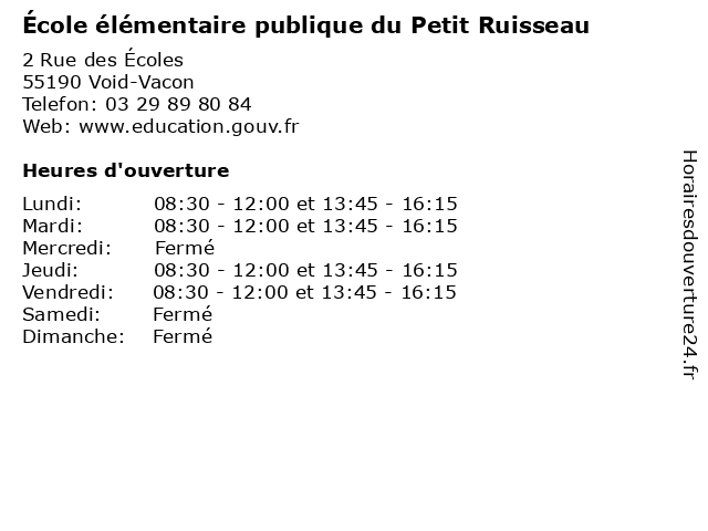 | Mardi | 08:30-12:00 et 13:45-16:15 |