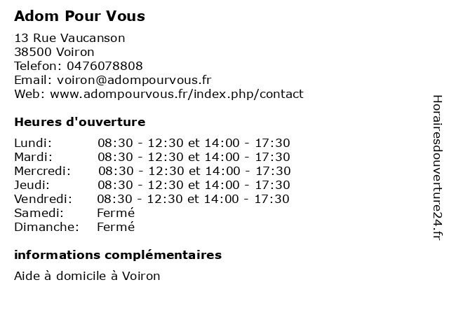 | Lundi | 08:30-12:30 et 14:00-17:30 |