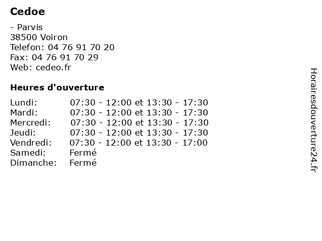 | Vendredi | 07:30-12:00 et 13:30-17:00 |