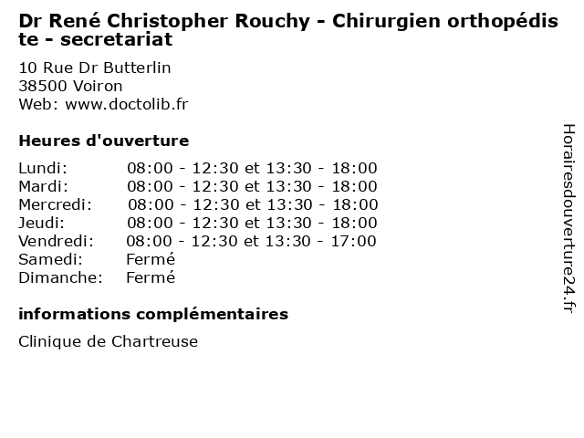 | Jeudi | 08:00-12:30 et 13:30-18:00 |