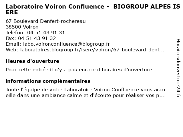 | Appeler Laboratoire Voiron Confluence - BIOGROUP ALPES ISERE | |