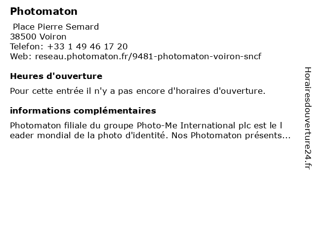 | 1 Photomaton (Distance: 0,31 km)12 Rue Mainssieux, 38500 Voironphotomaton