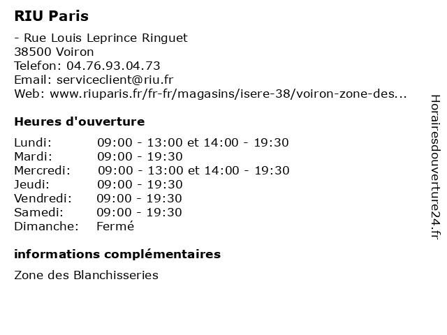 | Lundi | 09:00-13:00 et 14:00-19:30 |