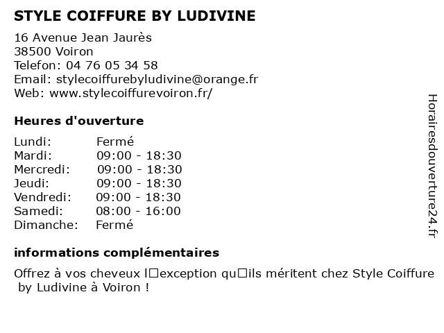 | Termes de recherche pour STYLE COIFFURE BY LUDIVINE:coiffure, by, style, ludivine, magasin de produits de soins capillaires, magasin d'articles de coiffure |
