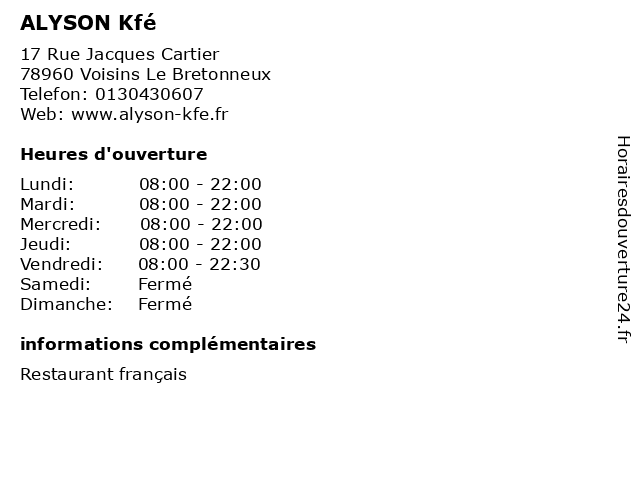 Termes de recherche pour ALYSON Kfé:restauration, restaurant, café, bar, bistrot, brasserie, pub, resto, bistro, kfé, alyson |