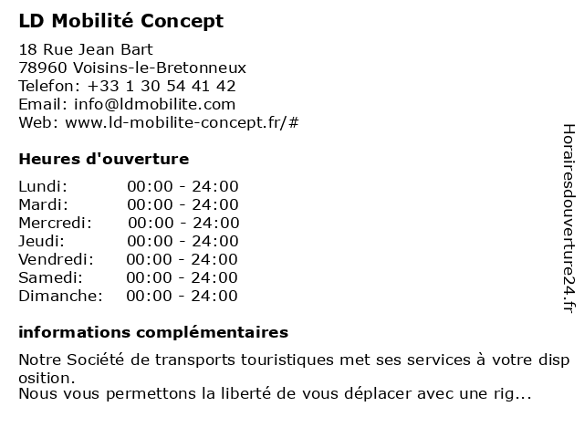 | Lundi | 00:00-24:00 |
