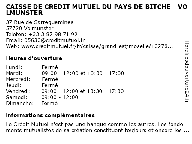 Termes de recherche pour CAISSE DE CREDIT MUTUEL DU PAYS DE BITCHE - VOLMUNSTER:du, de, crédit, mutuel, caisse, pays, bitche, volmunster |