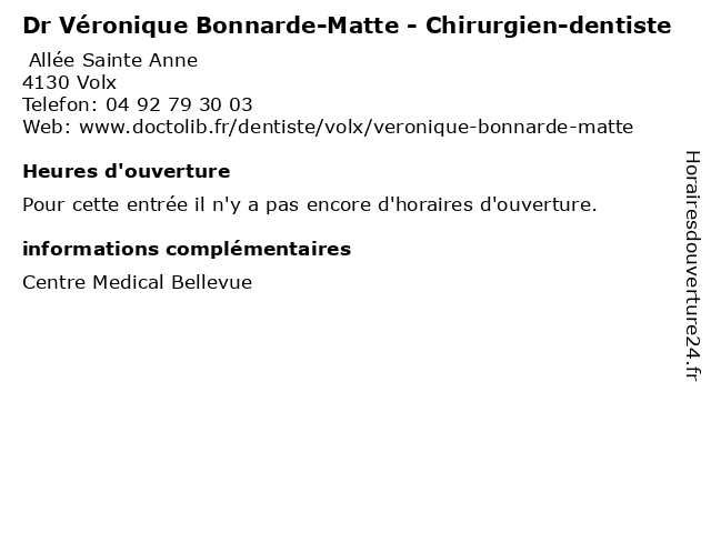 | Appeler Dr Véronique Bonnarde-Matte - Chirurgien-dentiste | |