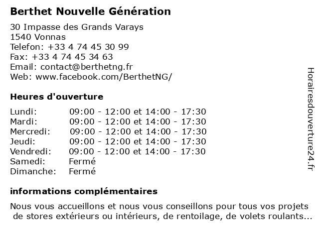 | Jeudi | 09:00-12:00 et 14:00-17:30 |