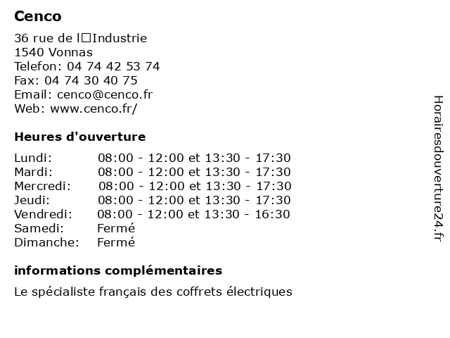 Horaires d'ouverture |