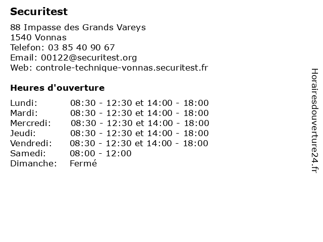 | Vendredi | 08:30-12:30 et 14:00-18:00 |