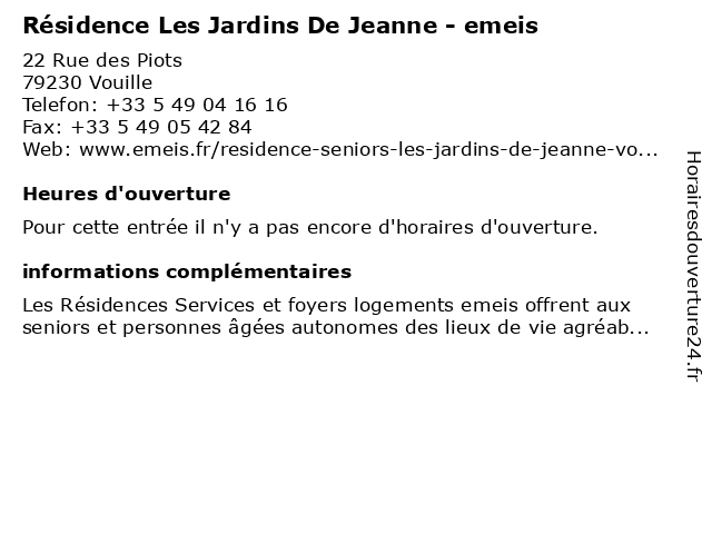 | Appeler Résidence Les Jardins De Jeanne - emeis | |