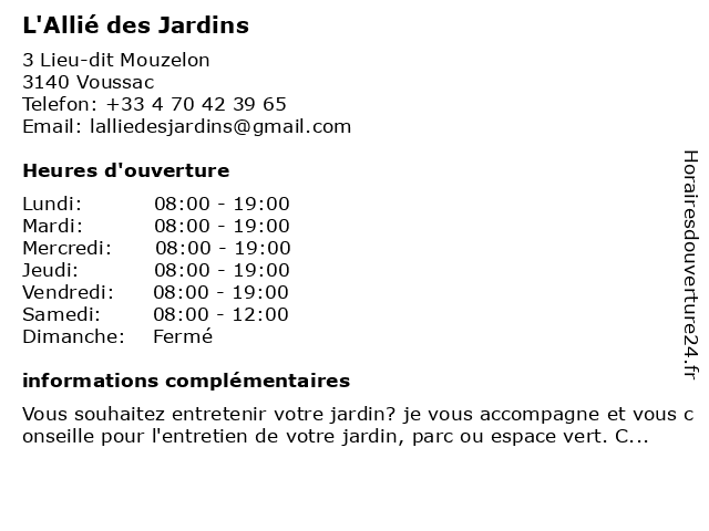 Termes de recherche pour L'Allié des Jardins:des, jardins, l'allié |