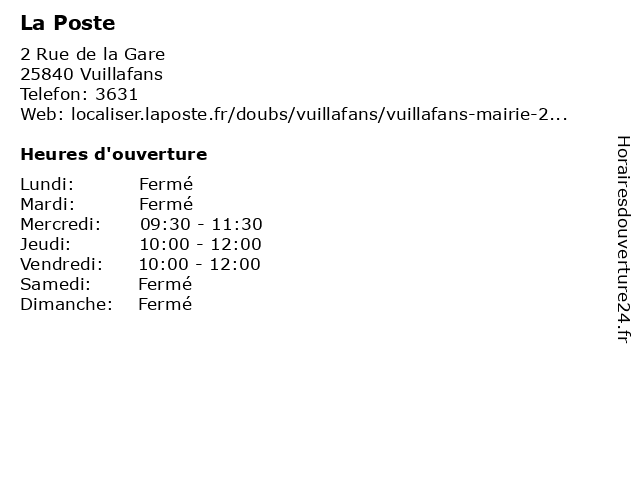 1 La Poste (Distance: 3,32 km) 13 Rue Ambroise Roy, 25930 Lods express chronopost, la, poste, réexpédition internationale 2 La Poste (Distance: 5,27 km) 3 Grande Rue, 25330 Chantrans express chronopost, la, poste, réexpédition internationale 3 La Poste (Distance: 5,45 km) 16 route des Gorges de Noailles, 25920 Mouthier-Haute-Pierre agence, assurance, banque, banque postale, bureau de poste, chronopost, colis, courrier, dps, expéditions internationales, la, point, postale, poste, relais, timbres, téléphonie, ups, western union 4 La Poste (Distance: 10,26 km) 19 Grande Rue, 25580 Nods express chronopost, la, poste, réexpédition internationale 5 La Poste (Distance: 10,27 km) 19 Grande Rue, 25580 Les-Premiers-Sapins agence postale, courrier postal, expédition internationale, la, poste 6 La Poste (Distance: 10,40 km) 36 Grande Rue, 25580 Étalans express chronopost, la, poste, réexpédition internationale |