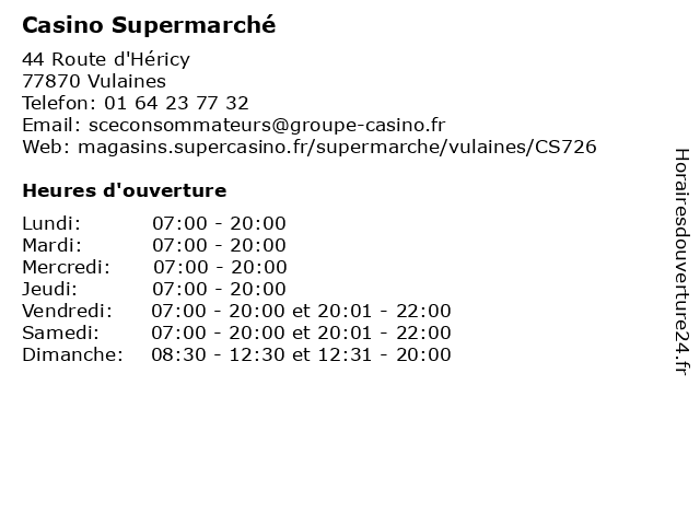 1 Casino Supermarché (Distance: 4,66 km) 44 Rue du Château, 77300 Fontainebleau alimentation, boisson, casino, supermarché, épicerie 2 Casino Supermarché (Distance: 18,27 km) - Route de Saint-Leu, 77240 Cesson-la-Forêt alimentaire, alimentation, casino, courses, distributeur, hypermarché, supermarché, épicerie 3 Casino Station-Service (Distance: 0,33 km) 44 Route d'Héricy, 77870 Vulaines carburant, casino, essences, gazole, service, services, station 4 Petit Casino (Distance: 6,34 km) 5 Rue Grande, 77670 Saint-Mammes alimentation, casino, fruits, légumes, petit, supérette, épicerie 5 Petit Casino (Distance: 12,53 km) - Rue Honoré Daumier, 77000 La Rochette alimentation, casino, petit, superette, supermaket, épicerie 6 Supermarché G20 (Distance: 14,73 km) - Centre Commercial Plein Ciel, 77350 Le Mee sur Seine courses, fruits, g20, légumes, nourritures, supermarché  |