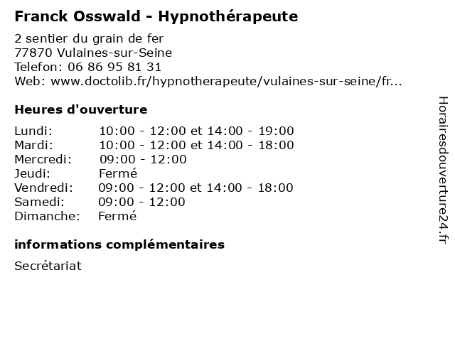 | Lundi | 10:00-12:00 et 14:00-19:00 |