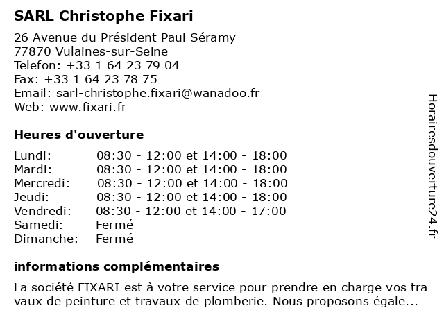 | Lundi | 08:30-12:00 et 14:00-18:00 |