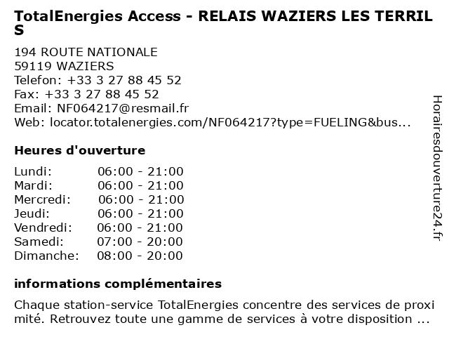 Termes de recherche pour TotalEnergies Access - RELAIS WAZIERS LES TERRILS:relais, les, waziers, access, total, gas station, station service, terrils, tankstelle, totalenergies |
