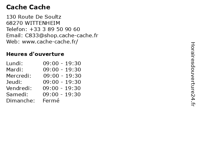 1 Cache Cache (Distance: 6,53 km) Avenue Robert Schuman, 68100 Mulhouse blazer femme, boutique vêtement, cache, cache cache, cardignan femme, chaussures femme, gilet femme, jean femme, magasin vêtement, manteau femme, mode femme, pull femme, robe femme, sac femme, t-shirt femme, tailleur femme, top femme, vêtement femme 3 Cache Cache (Distance: 6,96 km) 1 Boulevard de l’Europe, 68100 Mulhouse cache, cafe, chaussures, enfants, homme, lingerie, mode femme, restaurant, service, shopping 6 Vib's (Cache Cache - Bonobo - Bréal) (Distance: 6,72 km) Rue de Berne, 68110 Illzach blazer femme, bonobo, boutique vêtement, bréal, cache, cardignan femme, chaussures femme, gilet femme, jean femme, jean homme, magasin vêtement, magasin vêtements mixte, manteau femme, manteau homme, mode femme, pull femme, pull homme, robe femme, sac femme, t-shirt femme, t-shirt homme, tailleur femme, top femme, vib's, vêtement femme, vêtement homme, vêtement mixte |