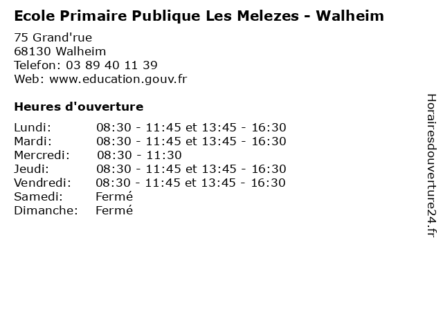 1 École Maternelle Publique - Walheim (Distance: 0,00 km) 75 Grand Rue, 68130 Walheim cours, maternelle, publique, services, walheim, école 2 École elémentaire publique - Walheim (Distance: 0,00 km) 75 Grand'rue, 68130 Walheim ecole, education, elémentaire, maternelle, publique, services, walheim, école 3 École primaire publique - Hochstatt (Distance: 5,22 km) 4 Rue du Bourg, 68720 Hochstatt ecole, education, hochstatt, maternelle, primaire, publique, services, école 4 Ecole Maternelle Publique Les Etangs (Distance: 5,25 km) - Rue Charles Édouard Amiot, 68130 Altkirch cours, ecole, education, etangs, les, maternelle, publique, services, école, étangs 5 Ecole Elémentaire Publique Les trois Tilleuls - Galfingue (Distance: 6,47 km) 9 rue du 25 Novembre, 68990 Galfingue ecole, education, elémentaire, galfingue, les, maternelle, publique, services, tilleuls, trois 6 École primaire publique - Galfingue (Distance: 6,47 km) 9 Rue du 25 Novembre, 68990 Galfingue ecole, education, galfingue, maternelle, primaire, publique, services, école |
