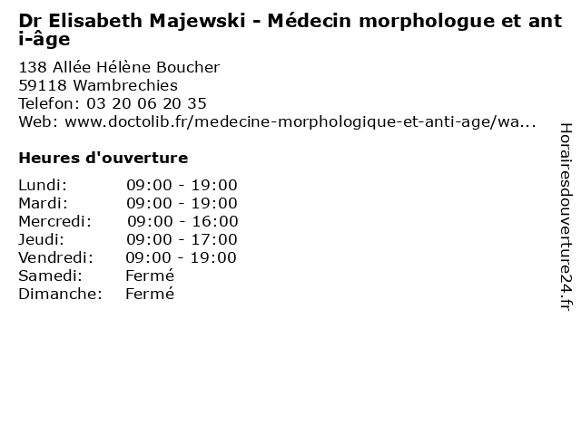 1 Dr Marie-Fanny Borys - Médecin morphologue et anti-âge (Distance: 0,00 km) 138 Allée Hélène Boucher, 59118 Wambrechies age, anti, borys, dr, et, fanny, marie, morphologue, médecin, soins, âge 2 Dr Panagiota Xenitos - Médecin morphologue et anti-âge (Distance: 4,40 km) 129 Rue Royale, 59800 Lille age, anti, dr, et, morphologue, médecin, panagiota, soins, xenitos, âge 3 Elisabeth Auslender - Psychologue (Distance: 4,97 km) 28 Rue Royale, 59800 Lille auslender, elisabeth, folie, psychiatre, psychiatrie, psychiatrique, psychologue 4 Dr Kamel Lhoest - Médecin morphologue et anti-âge (Distance: 5,20 km) 52 Rue des Ponts de Comines, 59800 Lille age, anti, dr, et, kamel, lhoest, medecin, morphologie, morphologue, médecin, âge 5 Elisabeth Ober - Psychologue (Distance: 5,74 km) 55 Avenue du Président Kennedy, 59800 Lille elisabeth, folie, ober, psychiatre, psychiatrie, psychiatrique, psychologue 6 Thomas-Bourgeois Elisabeth (Distance: 6,63 km) 76 Boulevard Jean-Baptiste Lebas, 59000 Lille bourgeois, elisabeth, thomas |