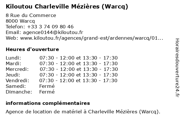 | Lundi | 07:30-12:00 et 13:30-17:30 |