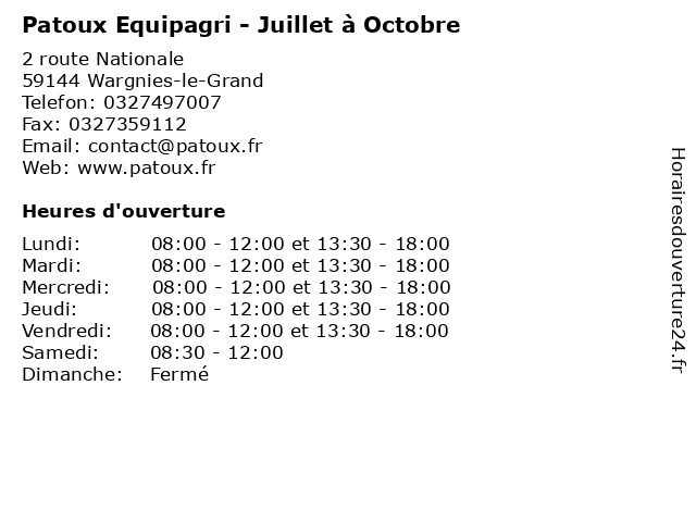 | Mardi | 08:00-12:00 et 13:30-18:00 |